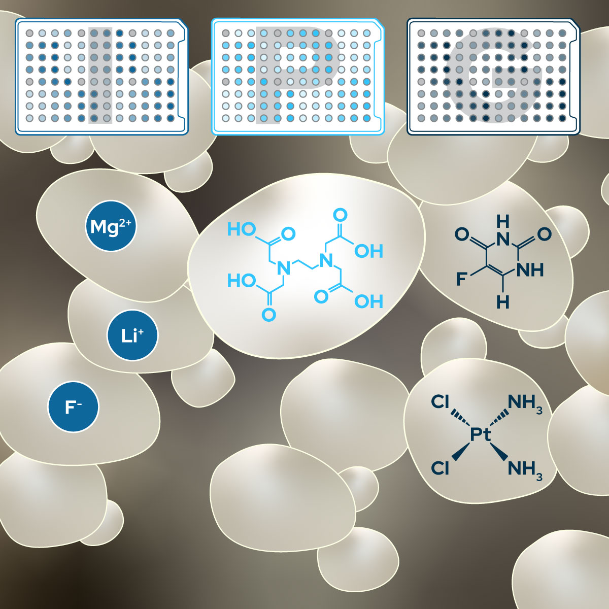 Each plate targets a distinct mechanism of action, enabling high-resolution profiling across fungal species. A total of 45 different compounds are distributed across three plates, with fifteen compounds per plate.